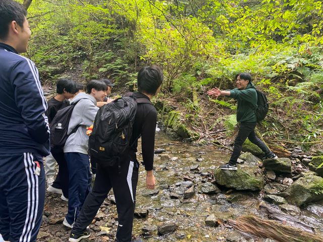 自然に入りまず始めに、呼吸を整えるワークを行い、少し落ち着いた気持ちで山に入りました。どんどん山道を進んでいくと、自然と笑顔も溢れ、みんなの笑い声が響き渡っていました。 途中の川で少し休憩~ 水遊びをしてはしゃぎながら、心も身体も回復!頂上目指して登っていきます。 最後の階段に苦しみながらも、なんとか山頂へ 綺麗な景色、みんなで食べるご飯 頑張って登ったからこそのご褒美です!楽しい時間はあっという間に過ぎ 名残惜しさもありながら、山を下っていきます。 身体の疲れもありましたが、みんなで話しながら下っていくと、アイスクリーム・お団子の売り場を見つけました。そこで学校長が全員分のアイスクリームやお団子を買ってくれました!! 疲れが吹き飛ぶほどの美味しさでした。校長先生ありがとうございます(^^) そして、最後の山下りはなんとリフトを使いました!! 快適な空の旅と思いきや・・・不規則な揺れにみんなはキャーキャー声を上げながら乗っていました。