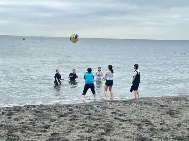 海辺では砂浜と波の力に包まれ、水のパワーを全身で受け止める。